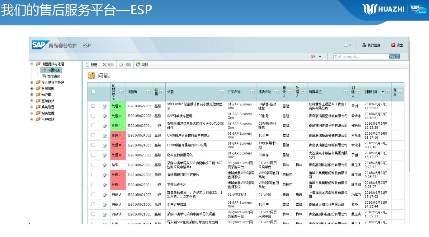 由SAP公司和青島中科華智共同為客戶提供售后服務,青島中科華智提供日常維護和快速的本地服務,SAP公司